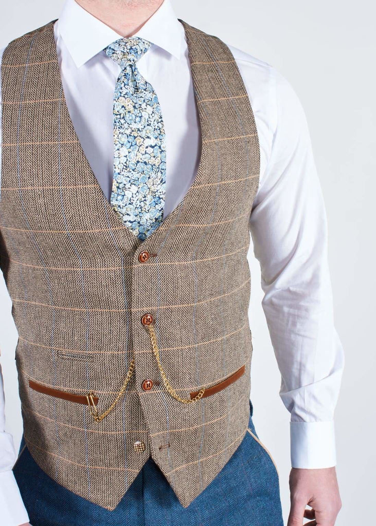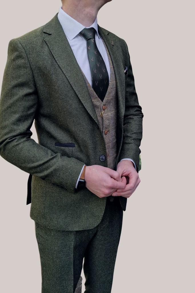 Fratelli Robbie Men's Green Tweed Suit with Marc Darcy Ted Tan Tweed Waistcoat